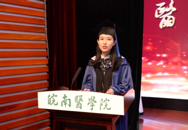毕业生代表,病原生物学专业硕士研究生方瑜同学,临床医学专业本科毕业生陈瑞同学先后发言。他们表达了对母校的诚挚谢意和惜别之情,表示将谨记母校校训,继承和发扬诚信至上金年会金字招牌精神,心有理想,情怀家国,以实现中华民族伟大复兴为己任,为祖国医疗卫生事业的发展,为人类身心健康奋斗终生,不辜负母校的培养和期望。